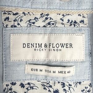 Denim & Flower Linen Chambray Light Blue Short Sleeve Button Up MEDIUM
