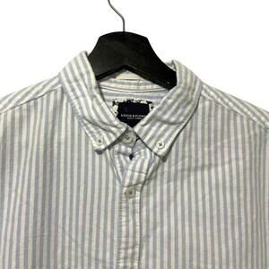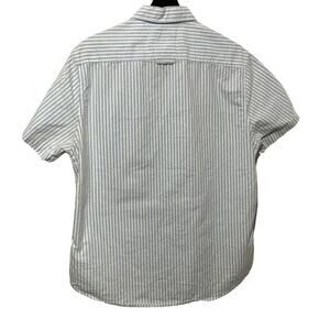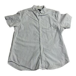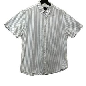 Denim & Flower Mens Button Up Shirt Size Large Blue White Stripes Short Sleeve