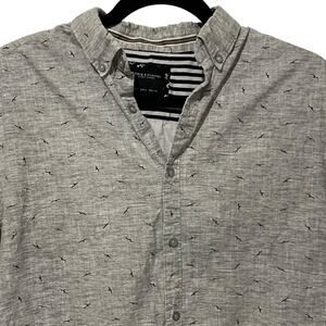 Denim & Flower Mens Large Gray Bird Print Short Sleeve Button Up Shirt Slim Fit