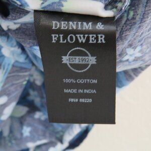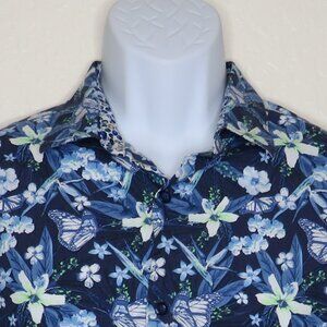 Denim & Flower* Men's Short Sleeve Button Down Curved Hem Floral Shirt~ Large
