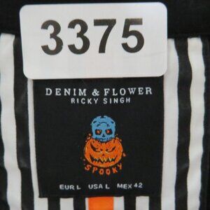Denim & Flower* Men's Short Sleeve Button Down Straight Hem Skulls Shirt~ Large