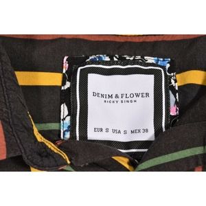 Denim & Flower Mens Small Short Sleeve Button Up Black Striped Shirt