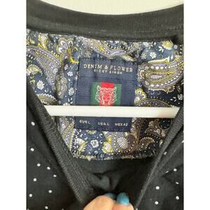 Denim & Flower Men's T-Shirt Size L-Black w/White Pola Dots