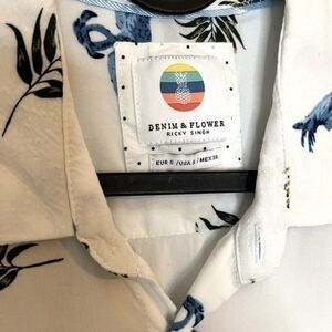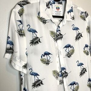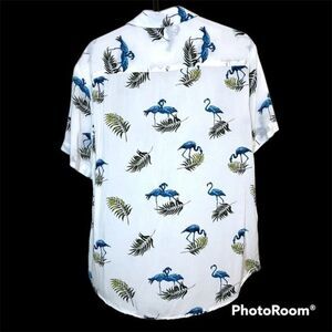 Denim & Flower Men’s White Flamingo Short Sleeve Button Down Shirt Size Small