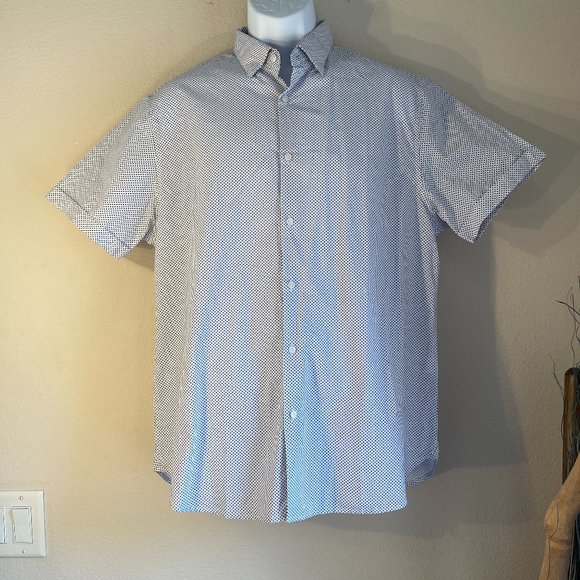 Denim & Flower Ricky Singh Navy Blue & White Cotton short sleeve button L slim fit, New Without Tags, see all images for detail, condition and measurements. No flaws found.