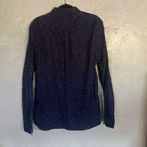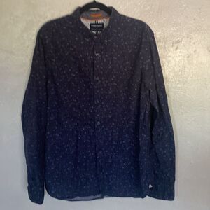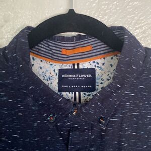 Denim & Flower Navy Blue Print Design Long Sleeve Button Down Dress Shirt
