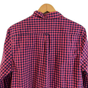 Denim & Flower Plaid Button Up Shirt Slim Fit Mens Size Large Red Navy Blue Thin