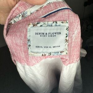 This casual button-down shirt from Denim & Flower features a vibrant red color, perfect for adding a pop of color to your wardrobe. Made from breathable fabric, it offers comfort and style for any informal occasion. The relaxed fit and short sleeves make it ideal for warm weather wear.