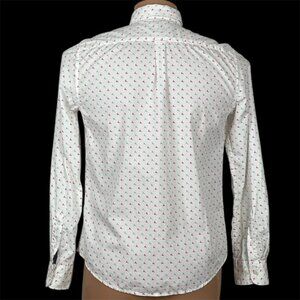 Denim & Flower Ricky Singh button down shirt in size medium. Made in India of 100% cotton in a cheery red & green Christmas reindeer print. Measures 21" armpit to armpit, 28" neck to tail, 25" sleeve. Excellent condition with no holes, tears, stains, or ripped seams. Smoke free, pet friendly home.