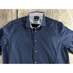 Denim & Flower Ricky Singh Dress Slim Fit Shirt Mens XL Navy Dots Button