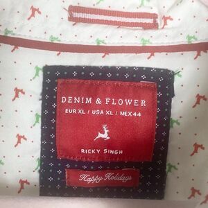 Denim & Flower Ricky Singh Holiday Reindeer Print Button Down Shirt XL