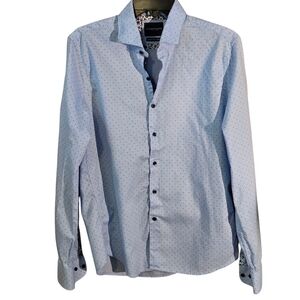 Denim & Flower Ricky Singh Light Blue Polka Dot Button Up Shirt Men's size M
