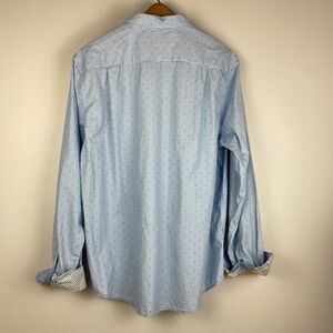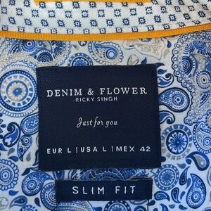 Denim & Flower Ricky Singh Men Dress Shirt SZ L Slim Fit Blue Stripes and Dots