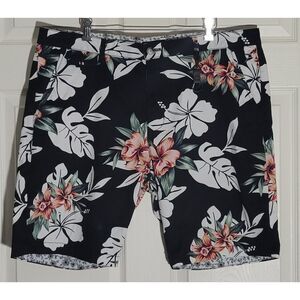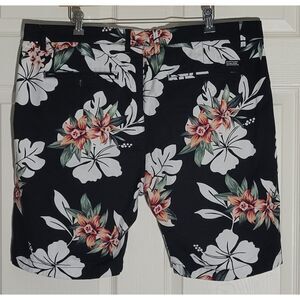 For sale is this pair of Denim & Flower Ricky Singh Mens 38 Power Stretch Black Floral Shorts Pre-Owned. Please view all photos as they are part of the description. The care tag is missing from these shorts. Comes from a Smoke-Free Shop.