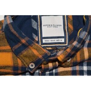 Denim & Flower Ricky Singh Men’s Flannel Shirt Small S Navy Gold Plaid Button