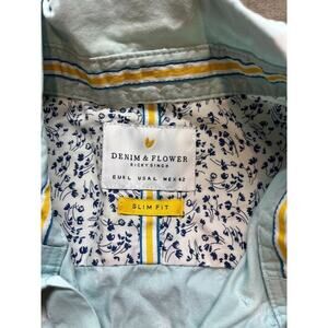 Denim & Flower Ricky Singh Mens Short Sleeve Blue Button Up Slim Fit Large