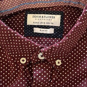 Denim & Flower Ricky Singh Plaid Shirt Men Small Red Slim Fit Button Down Casual