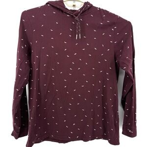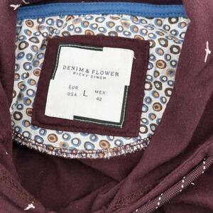Denim & Flower Ricky Singh Shirt Mens L Hoodie Pullover Long Sleeve Maroon Birds