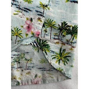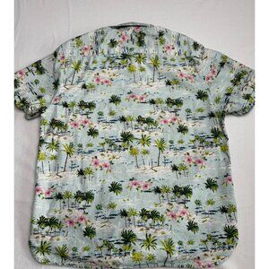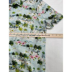 Denim & Flower Ricky Singh Shirt Mens XL Hawaiian Floral Short Sleeve Light Blue Palm Trees Button Up 100% Cotton Soft