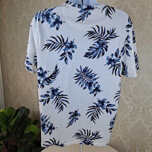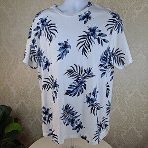Denim & Flower Ricky Singh Size XL White/Blue Floral & Leaf Printed T-Shirt EUC
