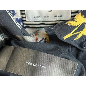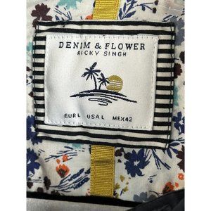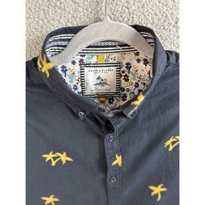 Product Details: Denim & Flower Shirt Mens Size Large Blue Palm Tree Button Up Short Sleeve
