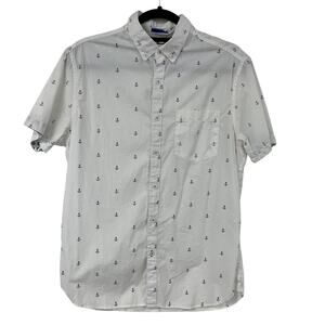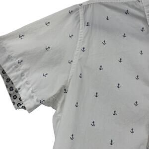 Denim & Flower Short Sleeve Anchor Print Button Down Slim Fit Men's Medium