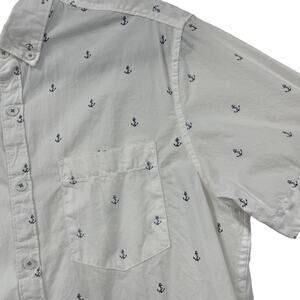 • Features: Short sleeve, Collared, Button down, Cotton, White with navy anchors printed all over