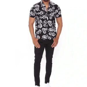 🆕Denim & Flower Short-Sleeve Button-Down Shirt M🆕