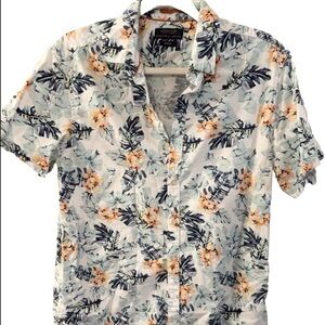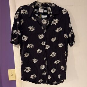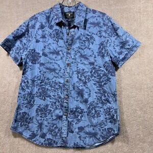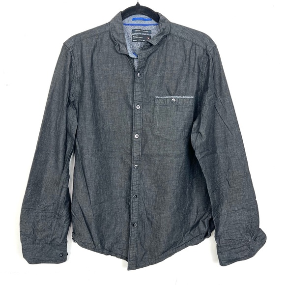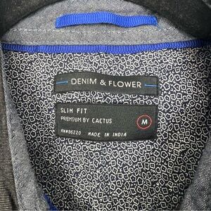 Denim & Flower Slim Fit Button Down Shirt Black Grey Men's Medium