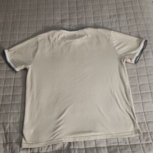 Keep it effortlessly stylish with this soft-knit t-shirt from Denim & Flower by Ricky Singh. Featuring a clean beige body with contrasting black and white striped collar and sleeve trim, it adds a modern twist to your everyday basics.
