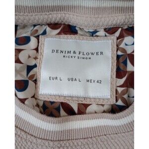 Denim & Flower Textured Long Sleeve Thermal Crew Neck Top Size Large