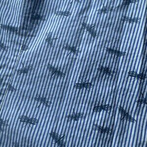 Color: White/blue striped with dragonfly print
