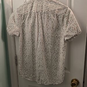 Denim & Flower White Casual Button Down Shirt with Speckled Design