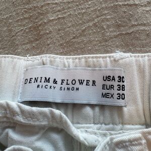 Embrace the summer with Denim & Flower's white flat front shorts, designed for a relaxed and versatile look. Crafted from high-quality materials, these shorts offer a comfortable fit perfect for warm weather outings. The classic flat front design ensures a sleek appearance, making them a staple in any casual wardrobe.