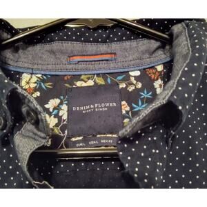 Denim & Flower by Ricky Singh Navy Polka Dot Short Sleeve Button Up Shirt Size L