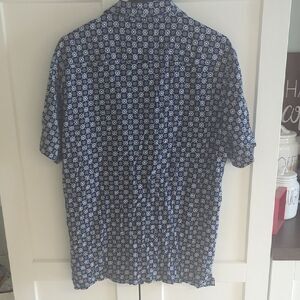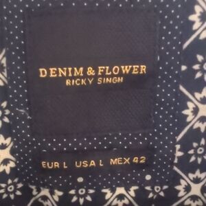 This stylish shirt from Denim & Flower showcases a deep blue color with a charming pattern of small white designs. Its lightweight fabric and relaxed fit make it perfect for casual outings in warm weather.