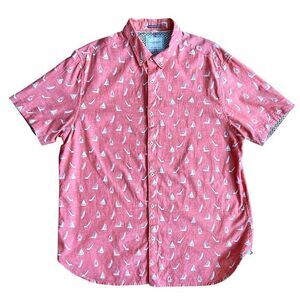Denim & Flower Nautical Sailboat Short Sleeve Button Down Men’s Shirt XL