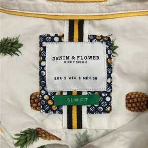 Denim & Flowers EUC Mens slim fit, button up pineapple shirt, size small