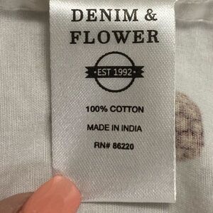 Denim & Flowers by Ricky Singh Men’s slim fit, button up, cotton, short sleeve shirt. Excellent preowned condition. Size small, 19.5 inches pit to pit.