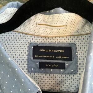 Denim & Flowers Ricky Singh Chambray Polka Dot Button Up Shirt Size Medium