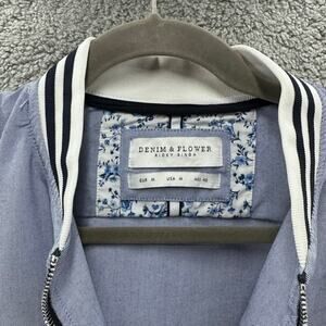 Denim & Flowers Ricky Singh Men's Medium Oxford Zip Up Jacket in Light Blue