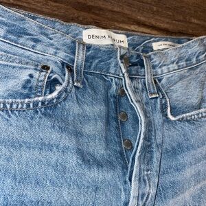 Denim Forum Blue Straight Leg Jeans with Cropped Finish