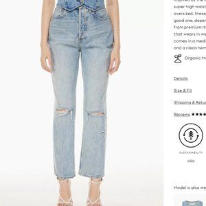 Inspired by the zeitgeist of '90s grunge, the Joni has a super high waist and a long, loose leg. Slouchy and oversized, these are big jeans with a bad attitude — or a good one, depending on your perspective. They’re made from premium Italian 100% organic cotton — material that wears in well, but never wears out. This version comes in a medium-light wash with fading, distressing and a clean hem.