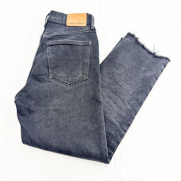 Denim Forum The Arlo High Rise Straight Black Denim Button Raw Hem Jean Size 26