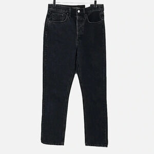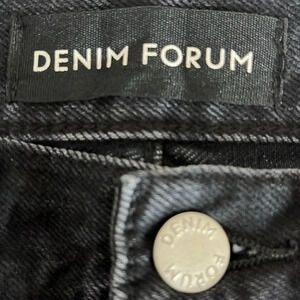 Denim Forum The Dillon High Rise Slim in Black Eyeliner - NEW - Size 29. New with tags. Sold at Aritzia. Inspired by a streamlined aesthetic, the Dillon is Denim Forum's signature rigid slim jean. They have a high waist and body-hugging fit that only improves with time, thanks to premium Japanese cotton denim. Button fly, 100% organic cotton so no stretch, 5 pockets, high rise, slim fit, leather back patch. Approximate measurements: 15 1/2" waist, 12" rise, 28" inseam.