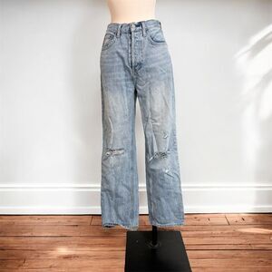 Denim Forum The Joni High Rise Loose Jeans Light Wash Distressed Straight 26”