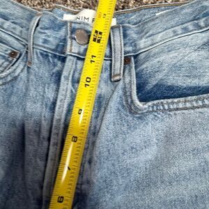 Denim Forum The Joni High Rise Straight jeans. Light wash, overall distressed. Concealed button fly. Straight leg. High waisted rise.