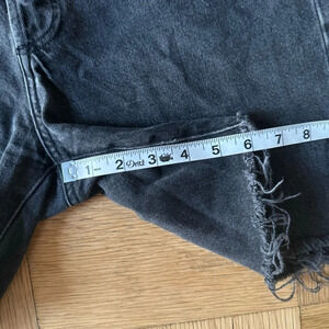 black midi jean shorts, size 30 aritzia, high rise denim, raw hem cutoffs, summer staple, casual streetwear, vintage inspired fit, stretch cotton blend
