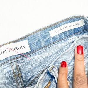 Denim Forum The Yoko Mid Thigh Short Button Fly Light Wash Denim Jeans Size 25