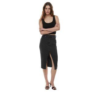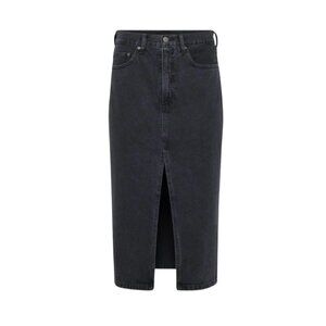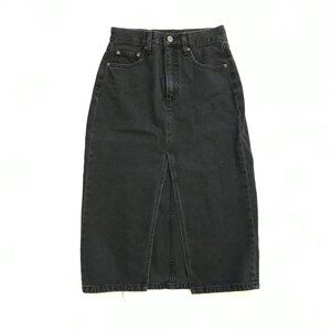 Denim Forum the 90's Halle Denim Midi Skirt Womens 25 Black Front Slit Aritzia